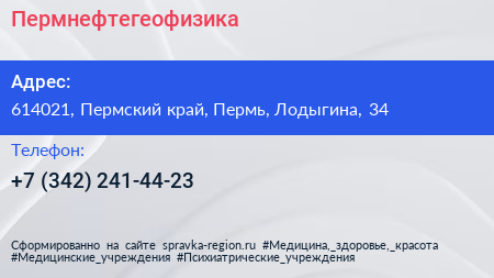 Пермнефтегеофизика по адресу 614021, Пермский край, Пермь, Лодыгина, 34 в дальнейшем Организация, размещена в следующих категориях: