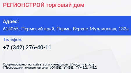 РЕГИОНСТРОЙ, торговый дом по адресу 614065, Пермский край, Пермь, Верхне-Муллинская, 132а в дальнейшем Организация, размещена в следующих категориях: