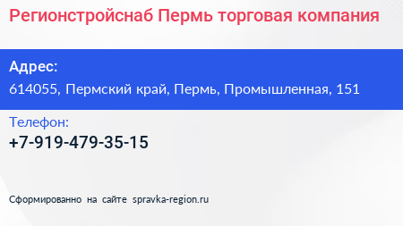 Регионстройснаб-Пермь, торговая компания по адресу 614055, Пермский край, Пермь, Промышленная, 151 в дальнейшем Организация, размещена в следующих категориях: