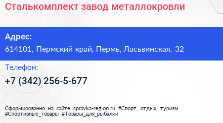 Сталькомплект, завод металлокровли по адресу 614101, Пермский край, Пермь, Ласьвинская, 32 в дальнейшем Организация, размещена в следующих категориях: