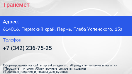 Трансмет по адресу 614016, Пермский край, Пермь, Глеба Успенского, 15а в дальнейшем Организация, размещена в следующих категориях: