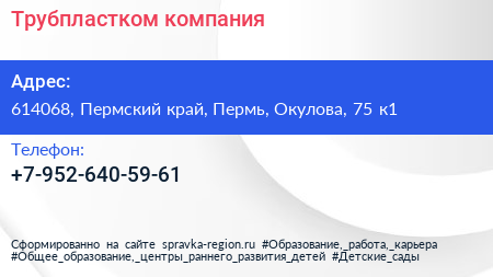 Трубпластком, компания по адресу 614068, Пермский край, Пермь, Окулова, 75 к1 в дальнейшем Организация, размещена в следующих категориях: