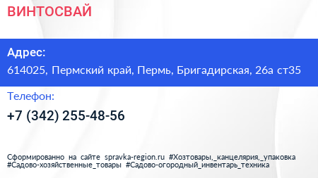 ВИНТОСВАЙ по адресу 614025, Пермский край, Пермь, Бригадирская, 26а ст35 в дальнейшем Организация, размещена в следующих категориях: