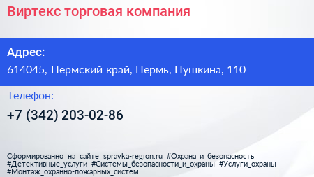 Виртекс, торговая компания по адресу 614045, Пермский край, Пермь, Пушкина, 110 в дальнейшем Организация, размещена в следующих категориях: