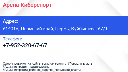 Арена Киберспорт по адресу 614016, Пермский край, Пермь, Куйбышева, 67/1 в дальнейшем Организация, размещена в следующих категориях: