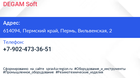 DEGAM-Soft по адресу 614094, Пермский край, Пермь, Вильвенская, 2 в дальнейшем Организация, размещена в следующих категориях: