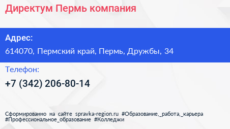 Директум Пермь, компания по адресу 614070, Пермский край, Пермь, Дружбы, 34 в дальнейшем Организация, размещена в следующих категориях: