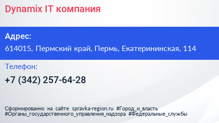 Dynamix, IT-компания по адресу 614015, Пермский край, Пермь, Екатерининская, 114 в дальнейшем Организация, размещена в следующих категориях: