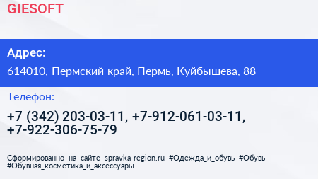 GIESOFT по адресу 614010, Пермский край, Пермь, Куйбышева, 88 в дальнейшем Организация, размещена в следующих категориях: