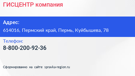 ГИСЦЕНТР, компания по адресу 614016, Пермский край, Пермь, Куйбышева, 78 в дальнейшем Организация, размещена в следующих категориях: