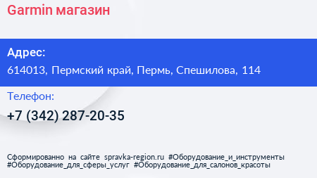 Garmin, магазин по адресу 614013, Пермский край, Пермь, Спешилова, 114 в дальнейшем Организация, размещена в следующих категориях:
