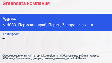 Greendata, компания по адресу 614083, Пермский край, Пермь, Запорожская, 1а в дальнейшем Организация, размещена в следующих категориях: