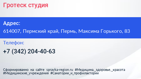 Гротеск, студия по адресу 614007, Пермский край, Пермь, Максима Горького, 83 в дальнейшем Организация, размещена в следующих категориях: