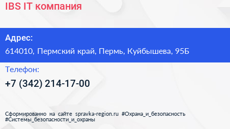 IBS, IT-компания по адресу 614010, Пермский край, Пермь, Куйбышева, 95Б в дальнейшем Организация, размещена в следующих категориях: