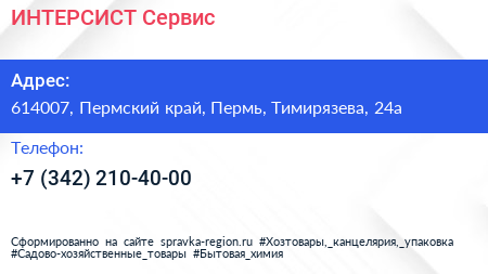 ИНТЕРСИСТ-Сервис по адресу 614007, Пермский край, Пермь, Тимирязева, 24а в дальнейшем Организация, размещена в следующих категориях: