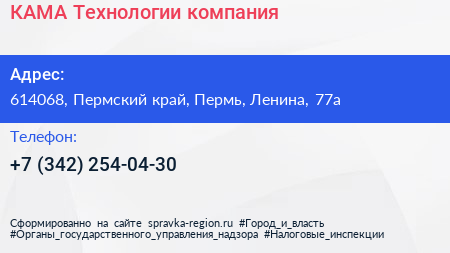 КАМА Технологии, компания по адресу 614068, Пермский край, Пермь, Ленина, 77а в дальнейшем Организация, размещена в следующих категориях: