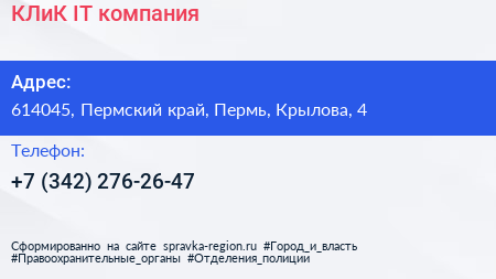 КЛиК, IT-компания по адресу 614045, Пермский край, Пермь, Крылова, 4 в дальнейшем Организация, размещена в следующих категориях: