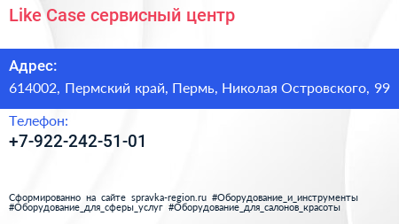 Like Case, сервисный центр по адресу 614002, Пермский край, Пермь, Николая Островского, 99 в дальнейшем Организация, размещена в следующих категориях: