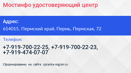 Мостинфо, удостоверяющий центр по адресу 614015, Пермский край, Пермь, Пермская, 72 в дальнейшем Организация, размещена в следующих категориях: