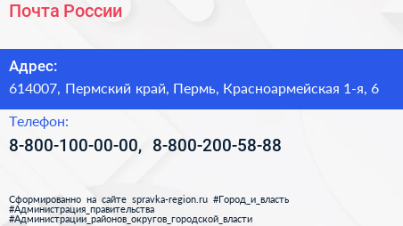 Почта России по адресу 614007, Пермский край, Пермь, Красноармейская 1-я, 6 в дальнейшем Организация, размещена в следующих категориях: