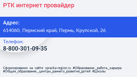 РТК, интернет-провайдер по адресу 614060, Пермский край, Пермь, Крупской, 26 в дальнейшем Организация, размещена в следующих категориях:
