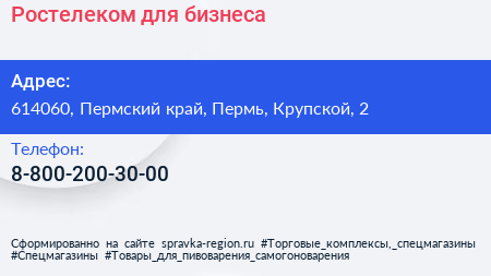 Ростелеком для бизнеса по адресу 614060, Пермский край, Пермь, Крупской, 2 в дальнейшем Организация, размещена в следующих категориях: