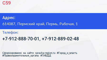С59 по адресу 614087, Пермский край, Пермь, Рабочая, 1 в дальнейшем Организация, размещена в следующих категориях: