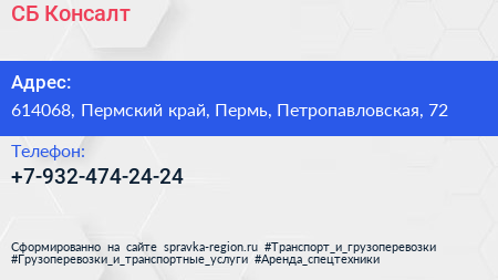 СБ Консалт по адресу 614068, Пермский край, Пермь, Петропавловская, 72 в дальнейшем Организация, размещена в следующих категориях: