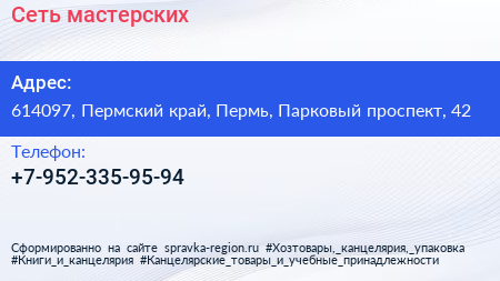 Сеть мастерских по адресу 614097, Пермский край, Пермь, Парковый проспект, 42 в дальнейшем Организация, размещена в следующих категориях: