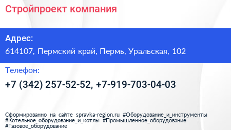 Стройпроект, компания по адресу 614107, Пермский край, Пермь, Уральская, 102 в дальнейшем Организация, размещена в следующих категориях: