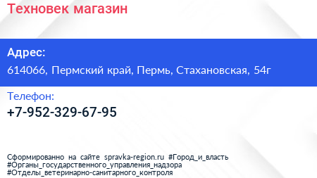 Техновек, магазин по адресу 614066, Пермский край, Пермь, Стахановская, 54г в дальнейшем Организация, размещена в следующих категориях: