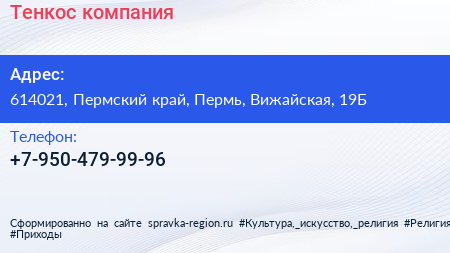 Тенкос, компания по адресу 614021, Пермский край, Пермь, Вижайская, 19Б в дальнейшем Организация, размещена в следующих категориях: