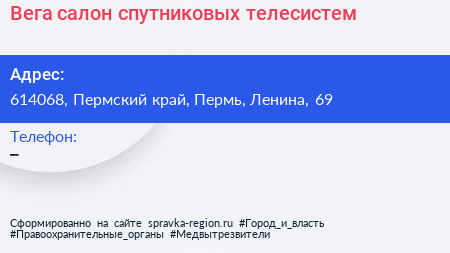 Вега, салон спутниковых телесистем по адресу 614068, Пермский край, Пермь, Ленина, 69 в дальнейшем Организация, размещена в следующих категориях: