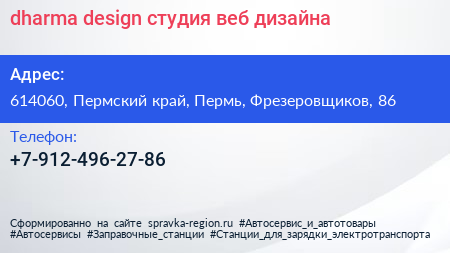 dharma design, студия веб-дизайна по адресу 614060, Пермский край, Пермь, Фрезеровщиков, 86 в дальнейшем Организация, размещена в следующих категориях: