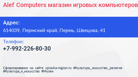 Alef Computers, магазин игровых компьютеров по адресу 614039, Пермский край, Пермь, Швецова, 41 в дальнейшем Организация, размещена в следующих категориях: