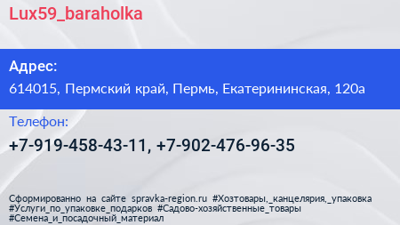 Lux59_baraholka по адресу 614015, Пермский край, Пермь, Екатерининская, 120а в дальнейшем Организация, размещена в следующих категориях: