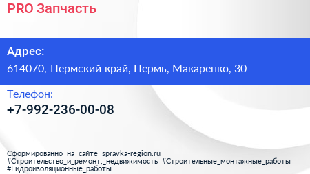 PRO Запчасть по адресу 614070, Пермский край, Пермь, Макаренко, 30 в дальнейшем Организация, размещена в следующих категориях:
