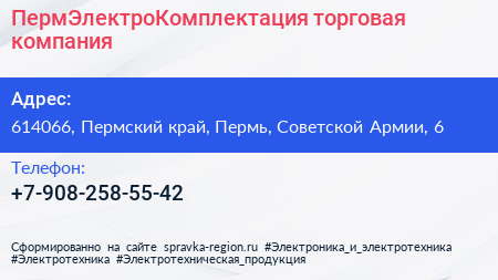 ПермЭлектроКомплектация, торговая компания по адресу 614066, Пермский край, Пермь, Советской Армии, 6 в дальнейшем Организация, размещена в следующих категориях: