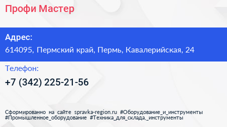 Профи Мастер по адресу 614095, Пермский край, Пермь, Кавалерийская, 24 в дальнейшем Организация, размещена в следующих категориях: