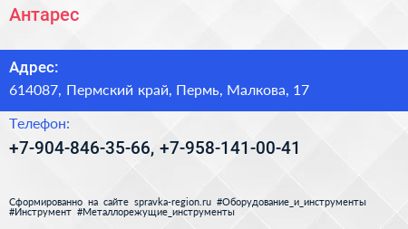 Антарес по адресу 614087, Пермский край, Пермь, Малкова, 17 в дальнейшем Организация, размещена в следующих категориях: