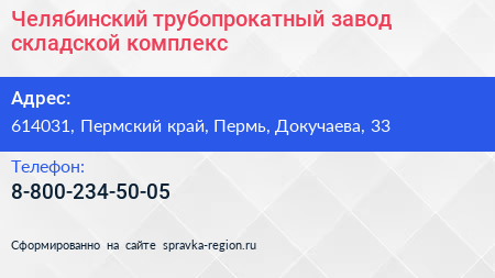 Челябинский трубопрокатный завод, складской комплекс по адресу 614031, Пермский край, Пермь, Докучаева, 33 в дальнейшем Организация, размещена в следующих категориях:
