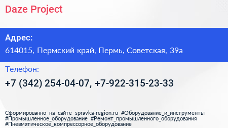 Daze Project по адресу 614015, Пермский край, Пермь, Советская, 39а в дальнейшем Организация, размещена в следующих категориях: