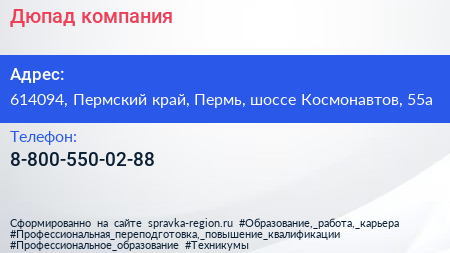 Дюпад, компания по адресу 614094, Пермский край, Пермь, шоссе Космонавтов, 55а в дальнейшем Организация, размещена в следующих категориях: