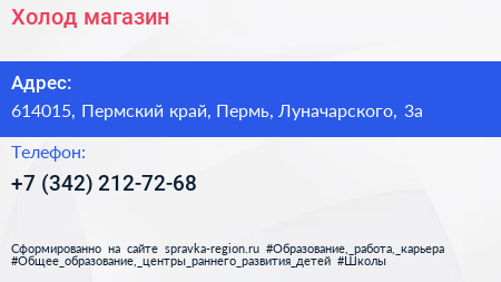 Холод-магазин по адресу 614015, Пермский край, Пермь, Луначарского, 3а в дальнейшем Организация, размещена в следующих категориях: