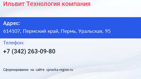 Ильвит-Технология, компания по адресу 614107, Пермский край, Пермь, Уральская, 95 в дальнейшем Организация, размещена в следующих категориях: