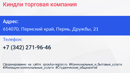 Киндли, торговая компания по адресу 614070, Пермский край, Пермь, Дружбы, 21 в дальнейшем Организация, размещена в следующих категориях: