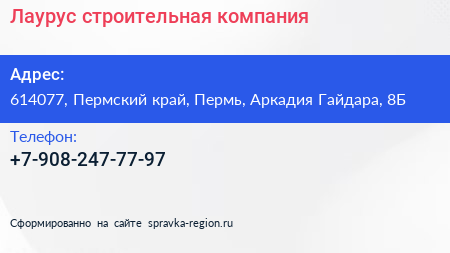 Лаурус, строительная компания по адресу 614077, Пермский край, Пермь, Аркадия Гайдара, 8Б в дальнейшем Организация, размещена в следующих категориях: