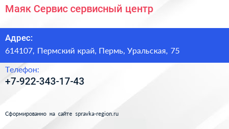 Маяк-Сервис, сервисный центр по адресу 614107, Пермский край, Пермь, Уральская, 75 в дальнейшем Организация, размещена в следующих категориях: