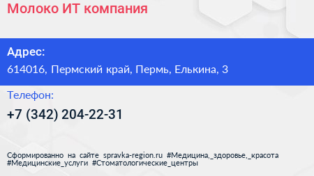 Молоко, ИТ-компания по адресу 614016, Пермский край, Пермь, Елькина, 3 в дальнейшем Организация, размещена в следующих категориях: