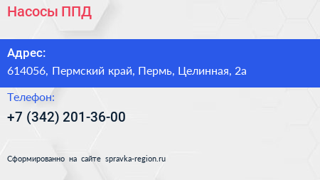 Насосы ППД по адресу 614056, Пермский край, Пермь, Целинная, 2а в дальнейшем Организация, размещена в следующих категориях: